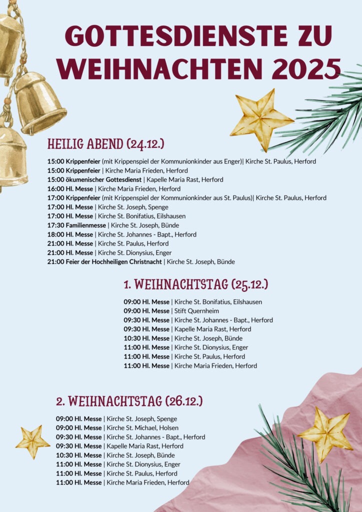 Weihnachtsgottesdienste im Pastoralen Raum Wittekindsland