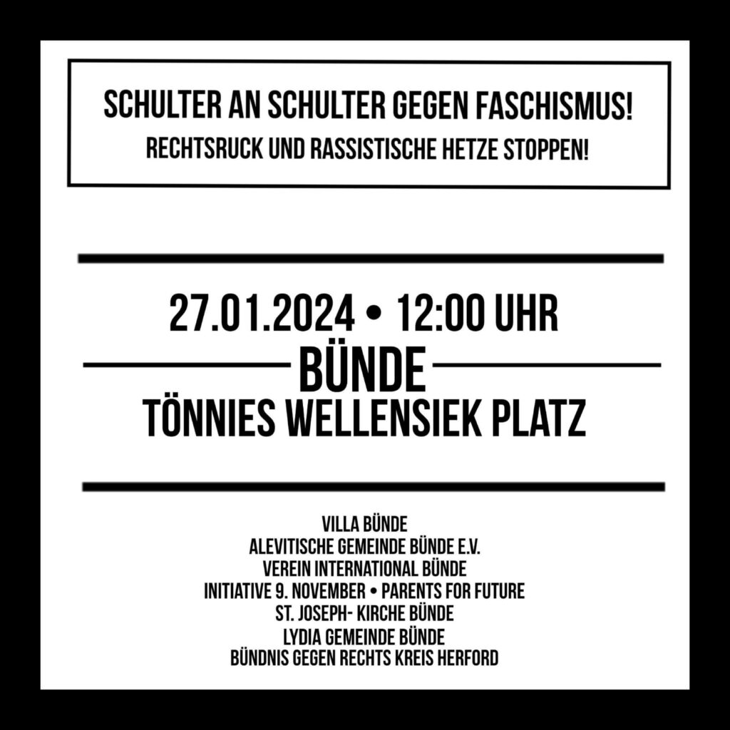 In Bünde findet die Kundgebung am Samstag, 27.01.2024 um 12 Uhr statt.
